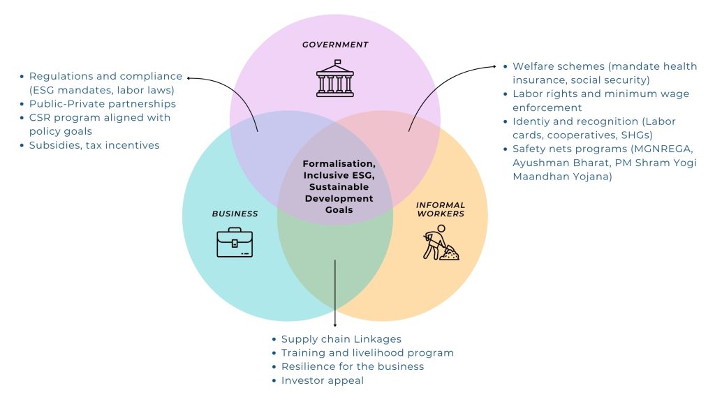 But this commitment cannot be limited to those formally associated with a company; it must extend beyond corporate walls to include the informal sector. Informal workers, forming nearly 90% of all workers, often fall through the cracks because they are not part of regulated supply chains and thus remain invisible in corporate sustainability narratives.