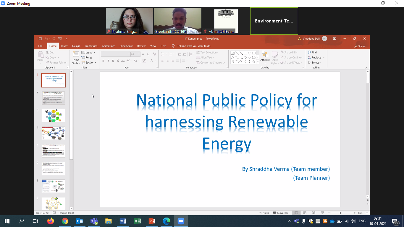 Four hundred and fourty-seven registrations were received under four themes: Foreign Policy, Education, Science & Technology, and Environment. Dr Pratima Singh and Dr Sreekanth Vakacherla from CSTEP provided problem statements and evaluated the top six teams for the Environment theme. The winning team would be offered an opportunity for internship at CSTEP.