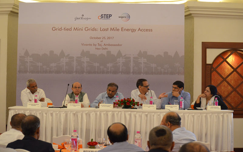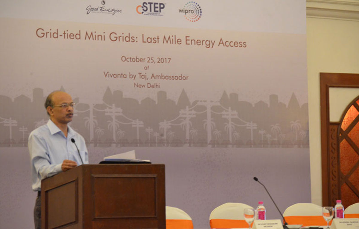 Executive Director, CSTEP – Dr. Anshu Bharadwaj addressing the audience on the Topic Grid Tied – Mini Grids: Last Mile Energy Access at Vivanta By Taj Ambassador, New Delhi. Good Energies and WIPRO are jointly collaborating with CSTEP on the event.