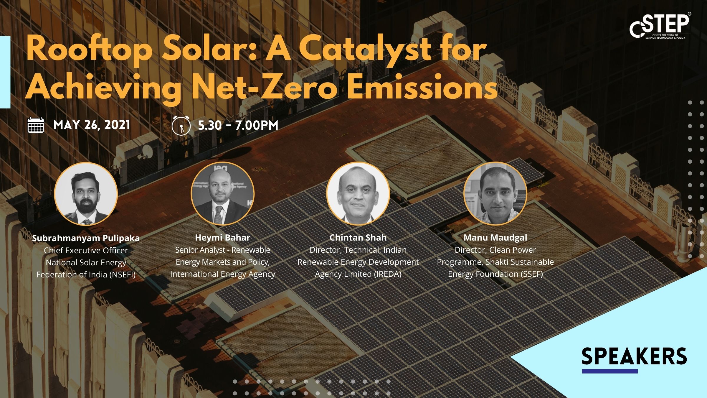 The Center for Study of Science, Technology and Policy (CSTEP) organised a webinar on 26 May 2021 to discuss the potential of rooftop photovoltaic (RTPV) systems in achieving net-zero greenhouse gas emissions in India.